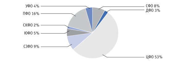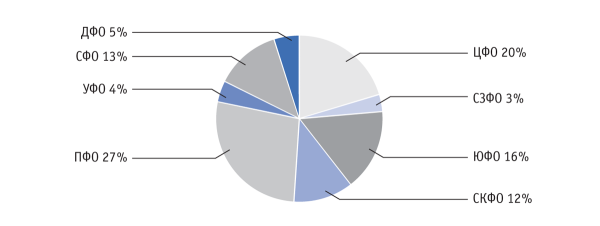 Рис. 4. Структура производства птицы в живой массе в РФ по округам